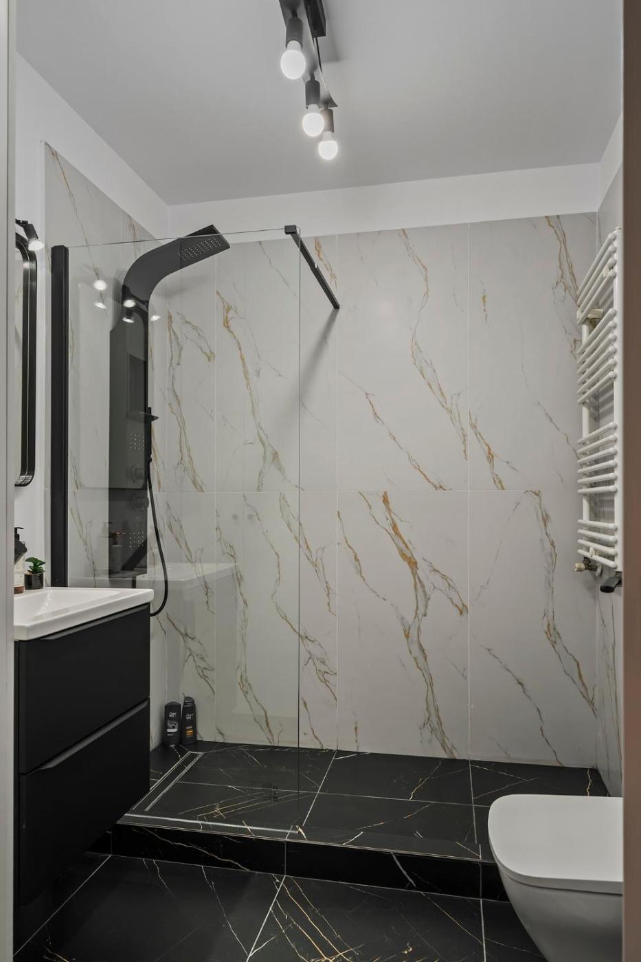 One-Bedroom Apartment. This apartment features a fireplace. This apartment comprises 1 living room, 1 separate bedroom and 1 bathroom with a walk-in shower and free toiletries. Meals can be prepared in the well-fitted kitchen, which comes with a stovetop, a refrigerator, a dishwasher and kitchenware. The air-conditioned apartment provides a flat-screen TV with streaming services, a washing machine, soundproof walls, a tea and coffee maker as well as a quiet street view. The unit offers 2 beds.
