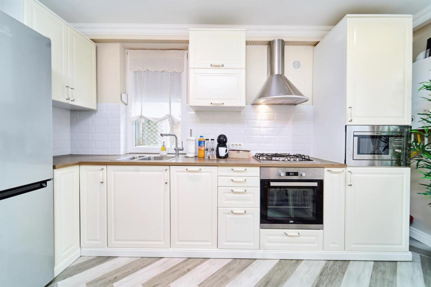Two-Bedroom Apartment. The fireplace is a top feature of this apartment. Boasting a private entrance, this air-conditioned apartment comes with 1 living room, 2 separate bedrooms and 1 bathroom with a bath and a shower. The fully equipped kitchen has a stovetop, a refrigerator, a dishwasher and an oven. The spacious apartment features a washing machine, soundproof walls, a tea and coffee maker, a flat-screen TV with streaming services, as well as city views. The unit has 3 beds.